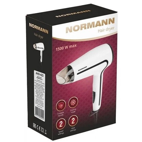 Фен NORMANN AHD-423. арт.AHD-423 Тип фен Мощность 1500 Вт Регулировка степени нагрева 2 ступ. Регулировка скорости воздушного потока 2 ... Читать далее...