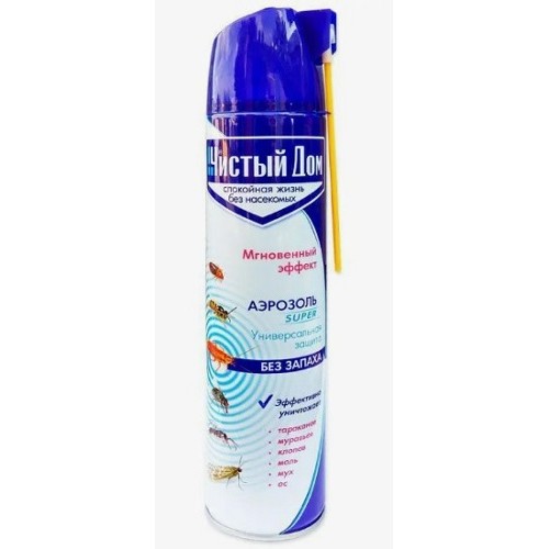 Аэрозоль Чистый дом 600мл От всех видов насекомых, От бабочек/мотыльков, От клопов, От клещей, От летающих насекомых, От мошек, От моли, От комаров, От мух, От муравьев, От тараканов, От ползающих насекомых, От шерш... Читать далее...