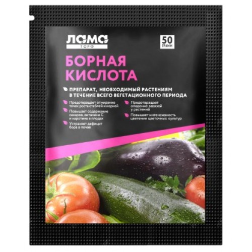 Борная кислота 50г Лама Препарат, необходимый растениям в течение всего вегетационного периода. - устраняет дефицит бора в почве - предотвращает отмирание точек роста стеблей и корней - предотвращает опадение зав... Читать далее...