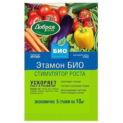 Этамон Био 5г предназначен для опрыскивания томатов, огурцов, перцев сладких и баклажан в открытом и защищенном грунтах с целью увеличения урожая, повышения в них содержания питательных веществ и формирования развитой корневой системы у томатов, огурцов, перцев и баклажан.