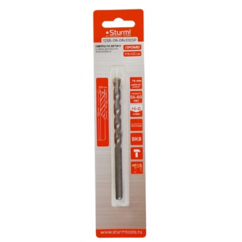 Сверло по бетону 8x120мм. твердосп. нап. BK8. ц/х Sturm! PROMO