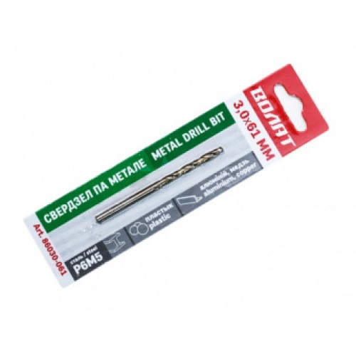 Сверло по металлу ц/х 3.0*33*61мм HSS ВОЛАТ 86030-061