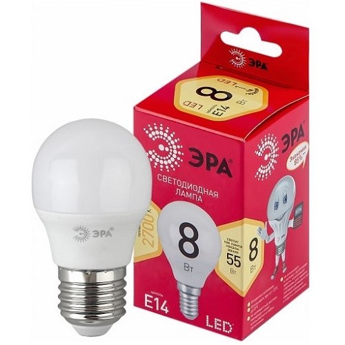 Лампочка светодиодная ЭРА RED LINE LED P45-8W-827-E14 R Е14 / E14 8 Вт шар теплый белый свет Страна производства: Китай ... Читать далее...