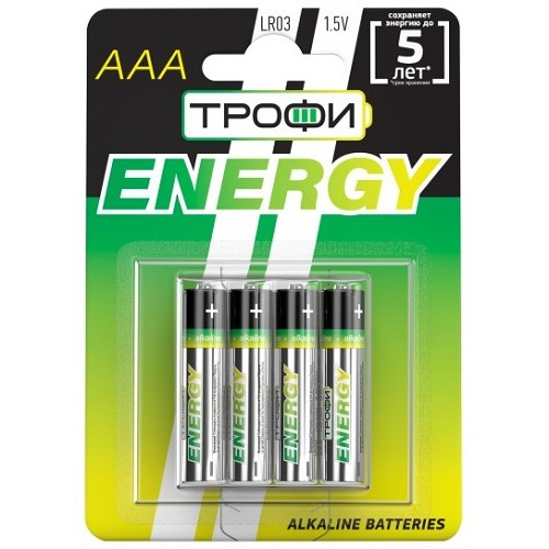 Трофи LR03-4BL Батарейки ENERGY Alkaline Страна производства Китай ... Читать далее...