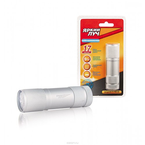Фонарь ЯРКИЙ ЛУЧ L-903В алюмин. корпус. 9 светодиодов.ремешок. на 3хААА... Читать далее...
