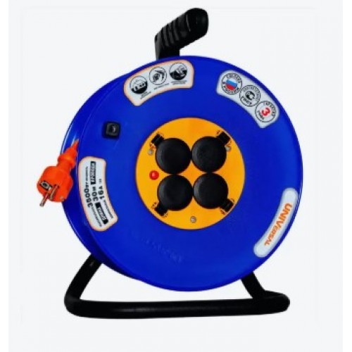 Удлинитель 4-х мест.с з.к. У16-039 30 м на катушке служит для подключения электроприборов вдали от стационарной розетки в бытовых условиях эксплуатации.