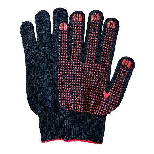 Перчатки раб. трикотаж. х/б Черные с пвх покр.Точка 5 нитей 2075