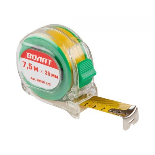 Рулетка 7.5м/25мм прозр. корп. ВОЛАТ (быт.). 20050-725