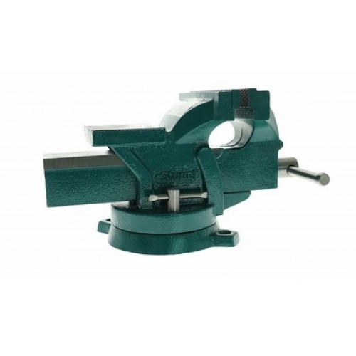 1075-01-125 Тиски слесарные 125 мм. ПОВОРОТНЫЕ УСИЛЕННЫЕ. Sturm Чугунные слесарные тиски с встроенной наковальней предназначены для широкого спектра слесарных работ. Закаленные стальные накладки на губки тисков обеспечивают высокую износостойкость изделия. Поворотное основание позволяет бесступенчато изменять положение тисков относительно опоры, что обеспечивает удобство работы.