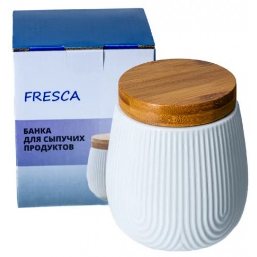 Банка для сыпучих продуктов фарфоровая 600 мл/10.5*10.5*12.5 см с бамбуковой крышкой (арт. PJ03430-S1. код 273805)