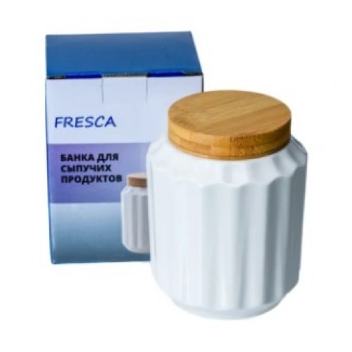 Банка для сыпучих продуктов фарфоровая 600 мл с бамбуковой крышкой (арт. PJ03400-M1. код 273942)