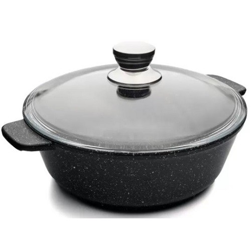 Жаровня Victoria Гранит АЛА 280 со стеклянной крышкой, G1028G Трёхслойное антипригарное покрытие Greblon C3. Допускается мойка сковороды в поcудомоечной машине. Жаровня и крышка полностью подходят для запекания блюд в д... Читать далее...