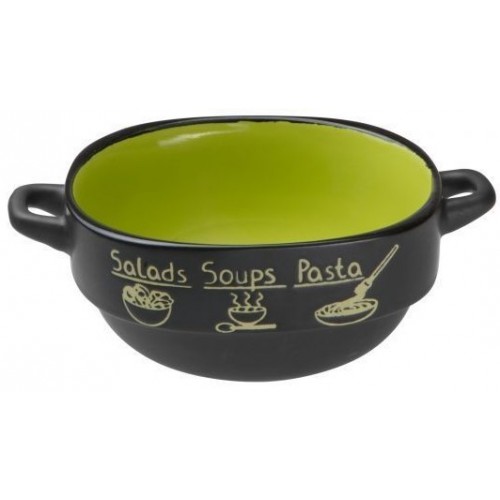 Супница керам. 140 мм. круглая. черно-зеленая. PERFECTO LINEA. арт.18-416513 предназначена для подачи первых блюд. Для удобства предусмотрены ручки по бокам емкости. Преимуществом такой супницы является то, что она хорошо держит тепло, от чего бульоны медленно остывают. Сохраняет природный вкус пищи, аромат продуктов и пряностей - может использоваться в микроволновои печи для подогрева. Подходит для хранения еды в холодильнике.