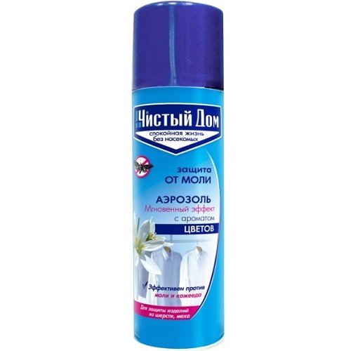 Указания по применению: перед применением встряхнуть баллон. С расстояния 20 см обработать внутренние стенки шкафов, чемоданов, коробок и др; кожееды: плинтусы под радиаторами отопления и кроватями, подоконники, обратную сторону шкафов и полок; для обработки помещения площадью 25-30 кв. достаточно распылять «Чистый Дом аэрозоль от моли и кожееда» в течение 3-5 секунд.