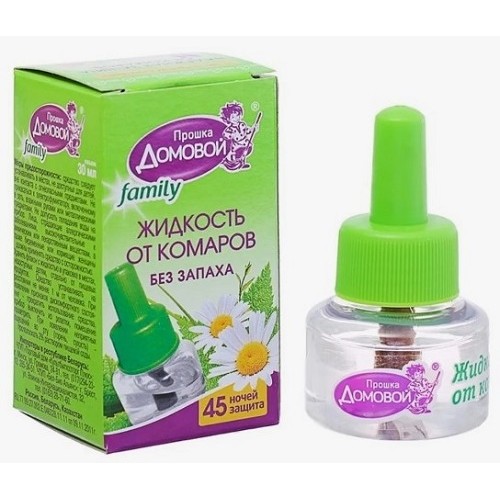 Домовой Прошка ЖИДКОСТЬ от комаров Био Family 45 ночей (30мл) ДВ - праллетрин - 1,0%. Предназначена для уничтожения комаров, мошек в помещениях. БЕЗ запаха. Используется с электрофумигатором. Страна производства: Р... Читать далее...