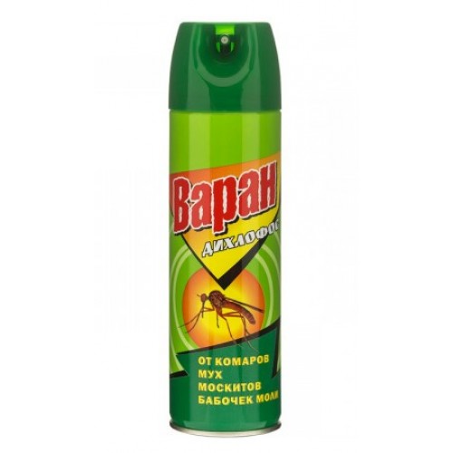 Инсектицид Варан А унив. 440мл универсальное средство для уничтожения насекомых: комаров, мух, моли, блох, клопов, тараканов. Не имеет неприятного запаха. Перед применением следует хорошо встряхнуть баллон и тщательно обработать помещение. Для достижения лучшего результата необходимо подержать средство 30 мин, после чего проветрить и провести влажную уборку. Дихлофос поставляется в емкости объемом 440 мл.