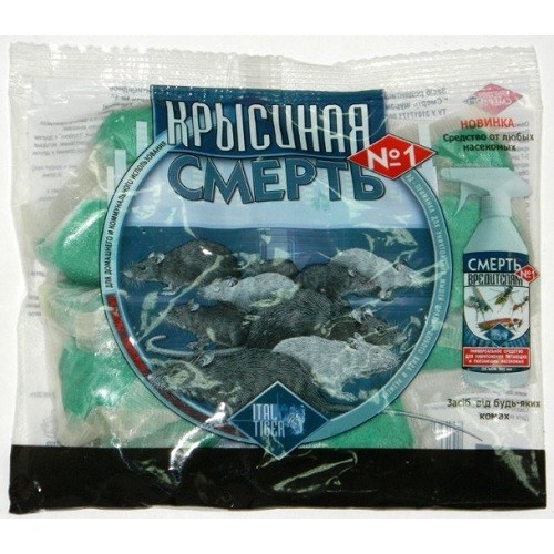 Родентицидная приманка Крысиная смерть №1 200г применяется для массовых обработок в местах заселения грызунов (канализация, водостоки, сельскохозяйственные постройки, жилые помещения, магазины, склады) из расчёта: по 1 п... Читать далее...