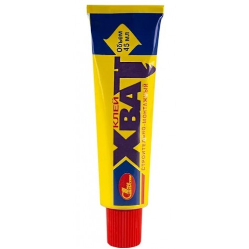 Клей Хват строительно монт. 45мл - специально разработан для склеивания элементов из пенопласта, алебастра, оргстекла, всех пород дерева, шпона, фанеры, гипса, ПВХ, керамики и гипсокартона. Он не просто склеит идентичные по структуре материалы, но также их различные сочетания. При этом необходимо следить, чтобы одна из поверхностей или обе имели выраженную пористость.