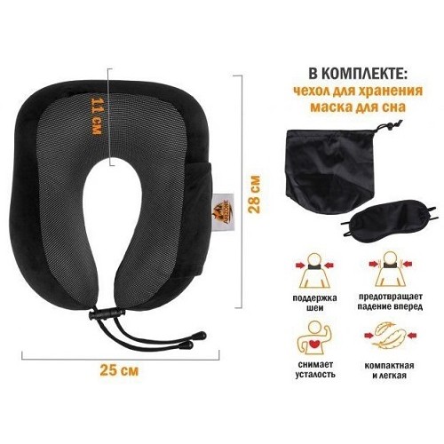 Подушка для путешествий с эффектом памяти. набор (маска для сна. чехол). черный. ARIZONE. арт.28-200001